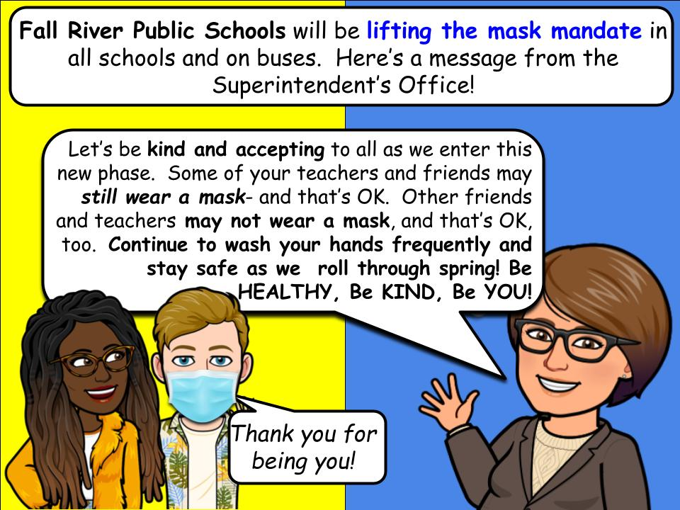We will be getting some mask news from the superintendent's office regarding the mask mandate as the CDC changed their position on mask wearing- stay tuned for an announcement. I will include a visual here for those who wish to use it with students as we rescind the mask mandate (again, stay tuned for date). This will be something that may need some discussion with kids (especially at the K-5 level), so hopefully the visual helps..